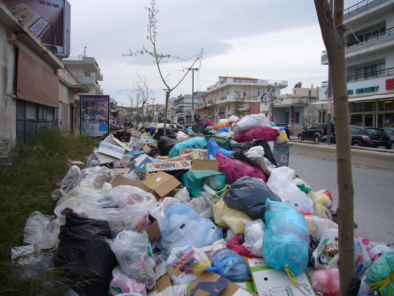 As I mentioned before, we live in a small street off Leofóro Knossoú, which is the main road from the center of Iraklio to the archeological site of Knossós. It goes all the way down from the Palace to the sea. We usually call it Knossoú Road, except in the winter when we rename it the Knossoú River. Now it has a new label: Knossoú Dump.